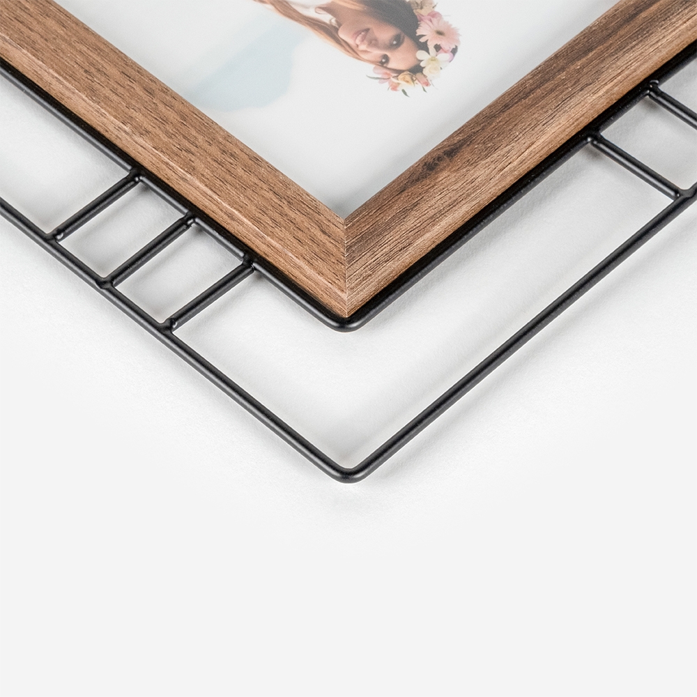 Moldura de alta qualidade, fabricado em metal com um apontamento em MDF, garantindo durabilidade e um acabamento perfeito para destacar as tuas fotos.